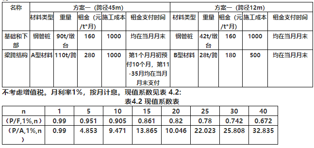 钢管桩租金:25242×160×(P/A,1%,40)=4038720×32.835=132611371.2(元)=13261(万元)