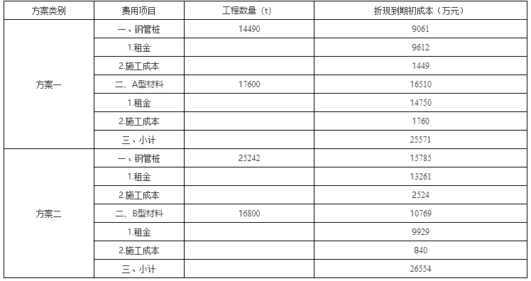 根据现值法计算的方案成本,方案一的成本现值小于方案二,故应选择方案一。