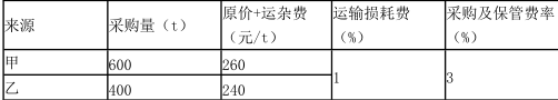 从甲、乙两地采购某工程材料,采购量及有关费用如下表所示。该工程材料的材料单价为( )
