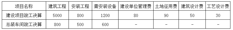 某工业建设项目及其总装车间的建筑工程费、安装工程费、需安装设备费以及应摊入费用如下表所示(单位:万元),则总装车间新增固定资产价值为( )万元。