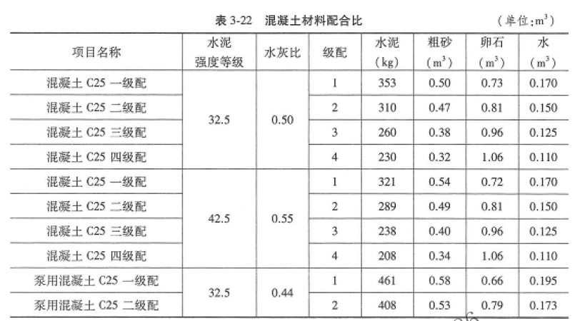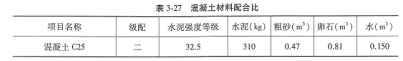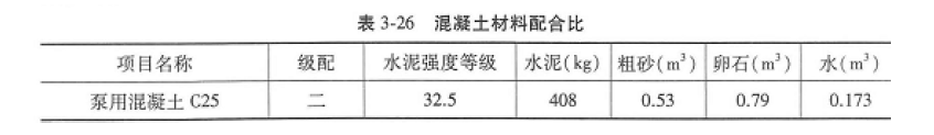 (1)由题干可知泵房墙体混凝土为二级配C25 泵送混凝土,混凝土材料配合比见表3-26。