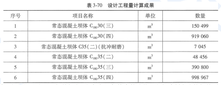 常态混凝土坝体C35(二) (抗冲耐磨)综合单价=530.62+42.64 =573.26(元/m3)