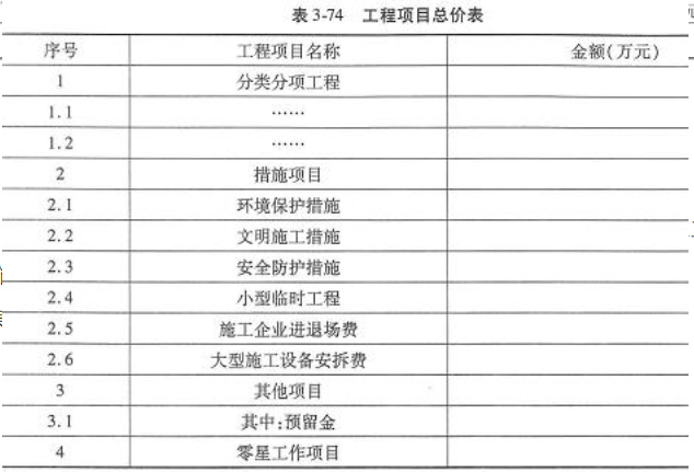 将各项费用的计算结果填人工程招标控制价工程项目总价表(见表3-76)。