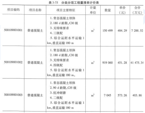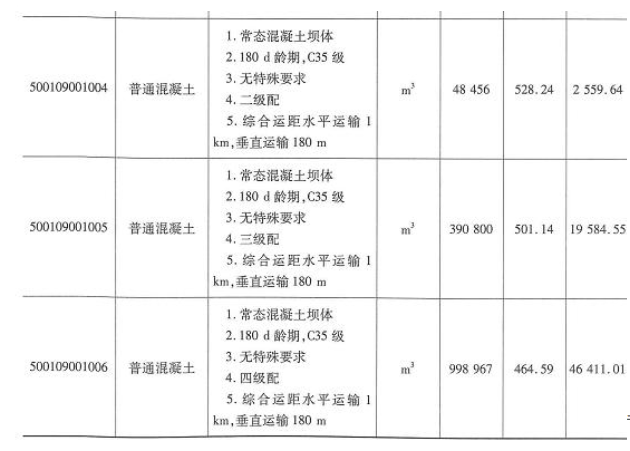 500109001001 普通混凝土合价=招标工程量×综合单价