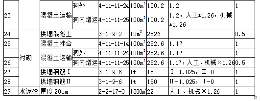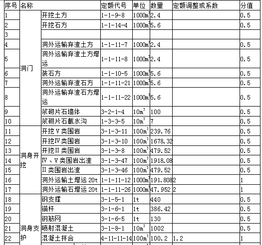 3.出渣定额考虑。洞内路面,洞内洞外换算。