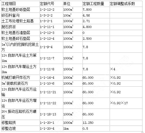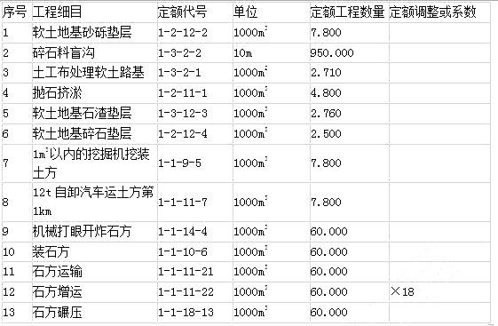 1、某造价工程师编制的该软基处理及路基填筑工程的施工图预算涉及的工程细目名称、定额代号、单位及工程数量如下表。请审查该造价工程师编制的施工图预算,可直接修改在下表中,也可按下表格式重新编制施工图预算。(计算结果保留三位小数)