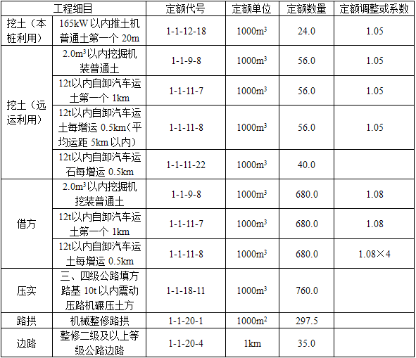 表3-12 本项目土石方工程施工图预算所需的全部工程细目