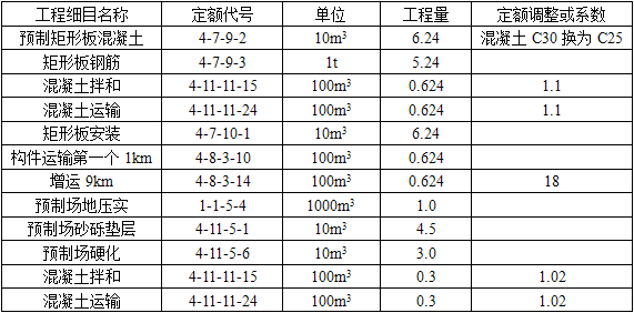 案例题 某四车道高速公路,路基宽26.00m,设计若干座单孔标准跨径5.00m的钢筋混凝土矩形板小桥。其中有一座小桥,其上部构造行车道钢筋混凝土矩形板设计C25混凝土62.40m3、钢筋5.24t、台高5.00m。10座小桥设一处预制场,计10000m2,场中面积30%要铺筑厚15cm的砂砾垫层,20%面积用15cm厚水泥混凝土硬化,作为构件预制底板。预制场至桥址平均运距计10km,用汽车运至安装地点。小桥有0.30m深浅水,须用草袋围堰,适当平整并用砂砾垫层30.0m3加固后才能架设桥梁临时支架,以便现浇上部构造混凝土。