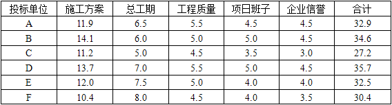 1.(1)计算各投标单位施工方案的得分,见表4-11。