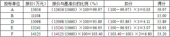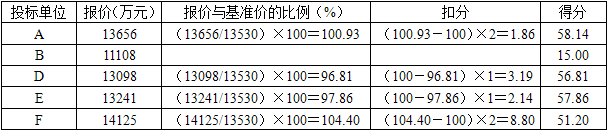 2.(1)计算各投标人的商务标得分,见表4-15。