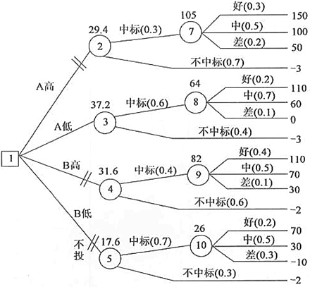 (2)计算决策树图中各机会点的期望值(将计算结果标在各机会点上方)。