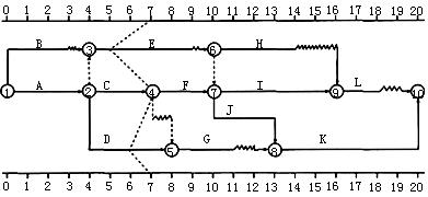 (3)D工作拖后1个月,影响G工作的最早开始时间,ESG=8,TFD=2,但不影响总工期。