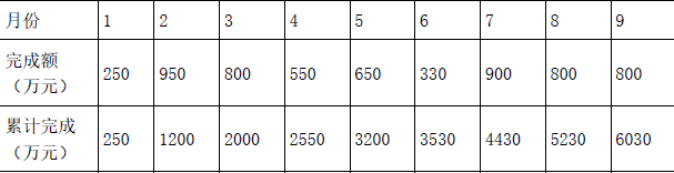扣回完成点:6000×80%=4800(万元),第7个月累计完成金额为4430万元小于4800万元,第8个月累计完成金额为5230万元,应在第8个月完成预付款的扣回。