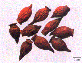 图中来源于茜草科,药用部位为干燥成熟果实的是( )
