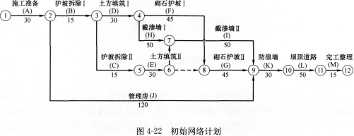 (2)在节点④、⑤之间缺少一项虚工作。或E工作与C、D工作之间存在逻辑关系。