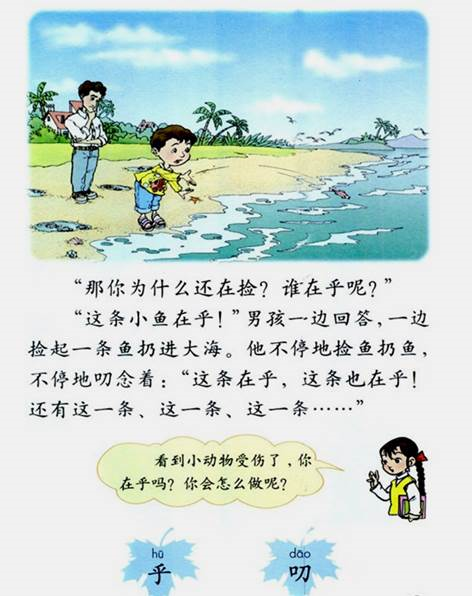 男孩救鱼:走弯捡扔(小鱼在乎)