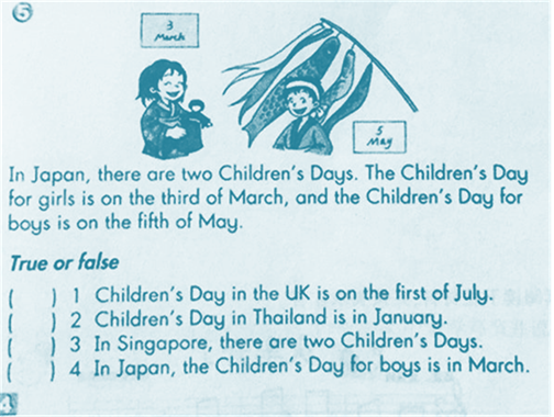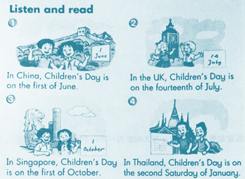 学生熟悉的中国儿童节来开展对话,易于学生理解其他国家儿童节的日期,同时,通过朗读课文和