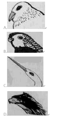 单选题 在进化的过程中,鸟嘴形成了各种不同的形状,下面是鹦鹉、鹭鸶、老鹰、金丝雀的头部画像,鹭鸶是哪一个?( )