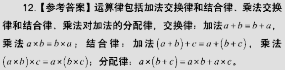 简答题:义务教育阶段要求理解**运算律,请列出并用符号表示。