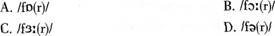 单选题 Which of the following shows the proper pronunciation of "for" in the sentence "1 will be right here waiting for you"?