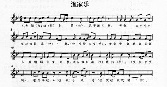 (1)F徵五声调式。 (2)歌曲共分为4个乐句:a(1-5小节)一b(6~12小节)一c(13.21小节)一d(22~28小节),为四乐句结构的一部曲式。