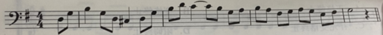 下面谱例是普罗科菲耶夫的《彼得与狼》中大黑猫的主题,它用什么乐器演奏?