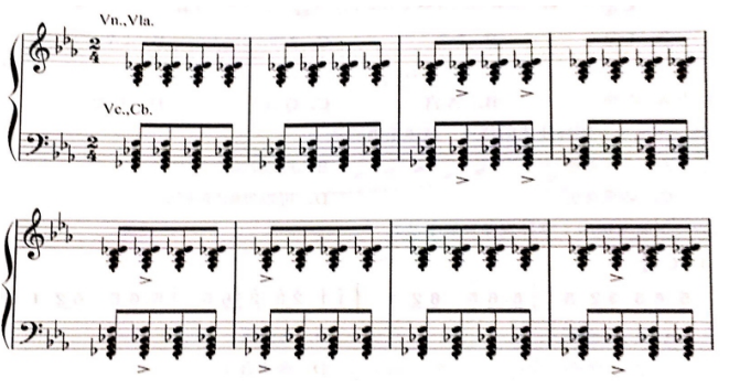 下面谱例中的音乐通过节奏重音,改变了原有的节拍规律,他出自斯特拉文斯基的哪部作品?
