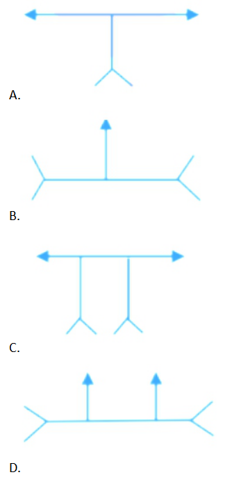 单选题 在下列队形练习的图示中,表示分队走的选项是( ) 。