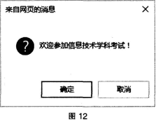 下列网页制作脚本语句中,能弹出如图12所示对话框的是()。