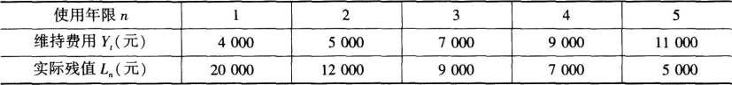 不定项选择题 某企业有一台模具加工设备,原值为32000元,根据有关资料,其逐年维持费用和逐年实际残值Ln(n=1、2、3、4、5)均为已知值,见下表。