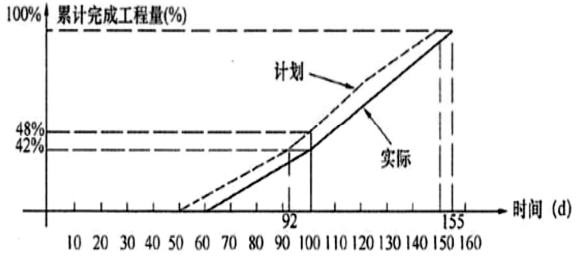 事件3:由于工作A和B的延迟,导致工作C晚开始10天,在C工作中,承包人采取赶工措施,进度曲线如图所示。