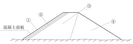 1.①垫层区:主要作用是为面板提供平整、密实的基础.将面板承受的水压力均匀传递给主堆石体,并起辅助渗流控制作用。