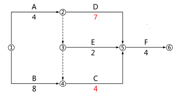 3.关键线路还是B→C→F,总工期变为16 个月。