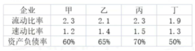 有同一行业的四家企业拟从银行申请一笔短期贷款,每家企业均向银行提供了能反映自身偿债能力的财务数据,如下表。仅根据上述信息