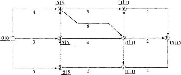 某建设工程分部工程双代号网络计划如下图所示,下列说法正确的有( )