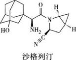 配伍选择题 金刚烷片段连接在甘氨酰胺N原子上的衍生物,与食物同服,达峰时间延迟,Cmax降低,但AUC不变的二肽基肽酶-