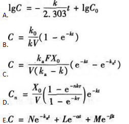 下列哪项是单室模型静脉滴注给药血药浓度与时间的关系式
