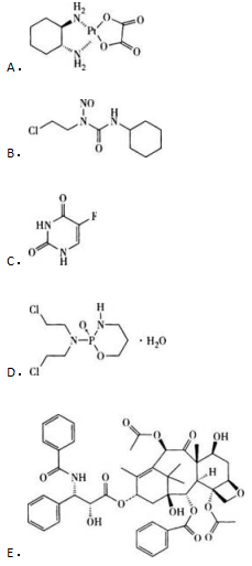 配伍选择题 属于氮芥类烷化剂,在体外对肿瘤细胞无效,只有进入体内后,经过活化才能发挥作用的药物是