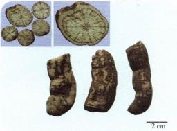 药材粉末显微鉴别可见草酸钙簇晶、糊化淀粉粒团块。纤维长梭形,具大的圆形纹孔的是