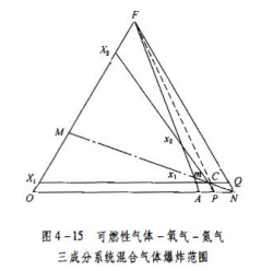下图是是以三角形图表示任何可燃性气体(F)、助燃性气体(O,)、惰性气体(N,)组成三成分系统混合气体的情况。那么,该图