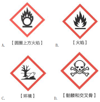 单选题 象形图指一种图形构成,它包括一个符号加上其他图形要素,如边界、背景图样或颜色,意在传达具体的信息。《基于 GHS 的化学品标签规范》(GB/T22234),下列象形图不适用于硫化氢气体危险性的是( )。