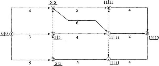某建设工程分部工程双代号网络计划如下图所示,下列说法正确的有( )