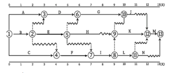 某工程双代号时标网络计划如下图所示,图中表明的正确信息是( )。