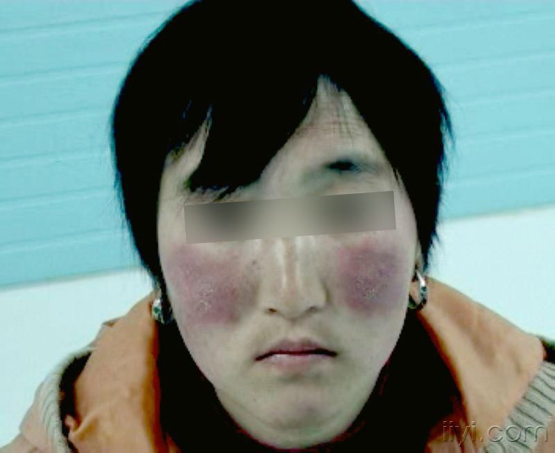 图片题 某患者女,最近常常在劳作出现呼吸困难,面部双颧绀红,如图所示,可能是( )