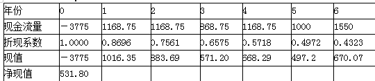 第4年的净现金流量=1168.75(万元)