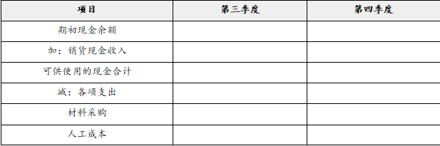 第三季度产量=10+15×8%-10×8%=10.4(万件)第三季度材料生产需要量=10.4×6=62.4(万千克)第四季度产量=15+18×8%-15×8%=15.24(万件)