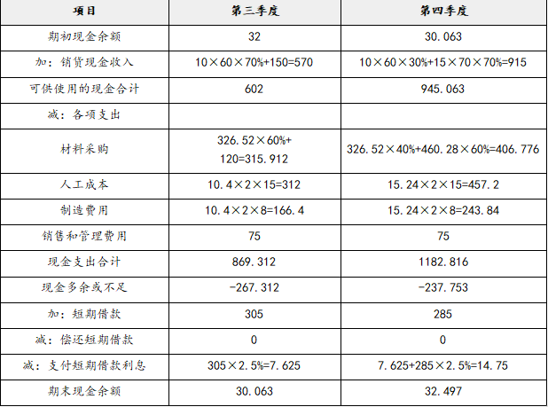 第四季度材料采购量=91.44+9.76-91.44×10%=92.056(万千克)