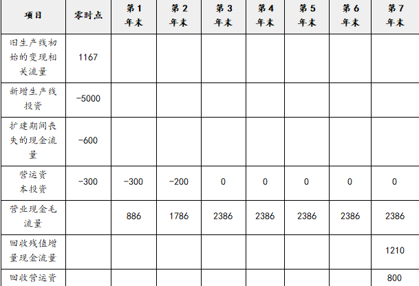 扩建项目的初始现金净流量=-5000+1167-600-300=-4733(万元)