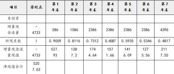 扩建项目的动态回收期=3+1173.23/1571.66=3.75(年),由于扩建项目的动态回收期3.75年大于类似项目的动态回收期3年,单纯从动态回收期指标角度考虑,该扩建项目不可行。但由于该扩建项目的净现值较大,而且使用寿命相同的新旧生产线的更新改造决策应以净现值指标作为决策的主要依据,动态回收期仅作为决策的辅助参考,综上考虑,甲公司仍应采纳扩建项目。