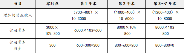②营运资本投资估算: